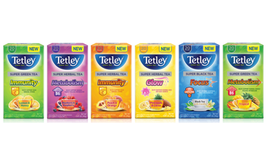 In honor of National Iced Tea day on June 10, Tetley introduced a new line of vitamin-rich bagged teas: Tetley Super Teas. The lineup features two immunity-boosting flavors, Lemon & Honey and Peach & Orange; two metabolism-enhancing flavors, Blueberry & Raspberry and Tropical; Glow, a Pineapple & Citrus flavored tea designed to help maintain skin and hair growth; and Focus, a Black Tea with vanilla flavor designed for boasting alertness and concentration. Each box of Tetley Super Teas contains 20 tea bags and has a suggested retail price between $2.99 and $3.99 in major retailers nationwide and online.