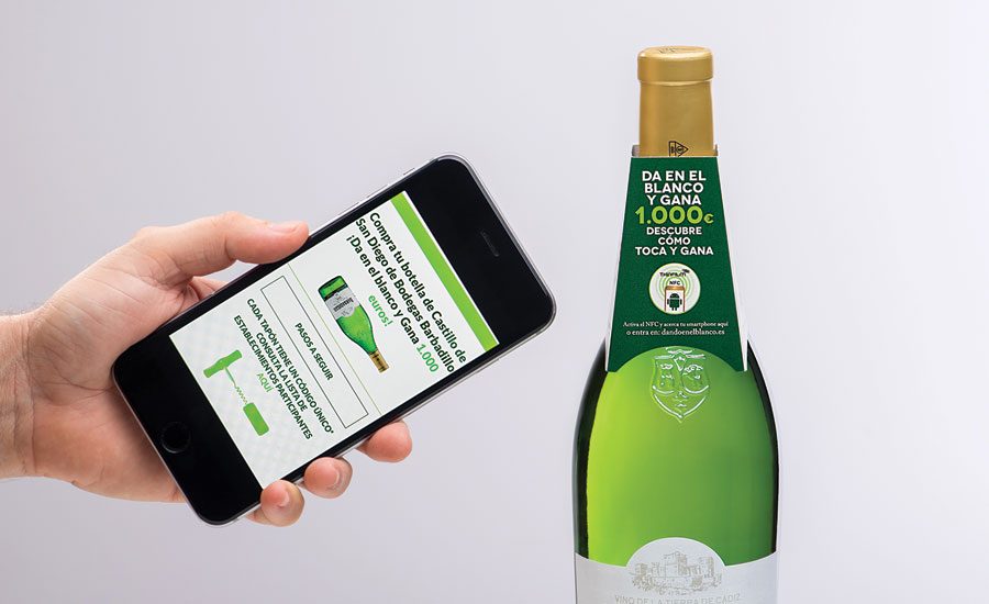 Approximately 126,000 bottles of Spanish white wine have gone beyond sophistication, thanks to a new contest allowing Barbadillo, Spain’s No. 1 white wine brand, to directly talk to consumers, the company says. Barbadillo partnered with Thinfilm, a near-field communications (NFC) mobile marketing solutions provider, for the contest that allowed consumers to interact with “smart” bottles of Castillo de San Diego white wine by tapping their smartphones on an NFC-enabled neck collar. The promotion, which took place from July 17 to Aug. 31, offered consumers the chance to win 12 cash prizes of $1,175. The “Dando en el Blanco” campaign, which loosely translates to “Hitting the Target,” also included TV, online and outdoor advertising support.
