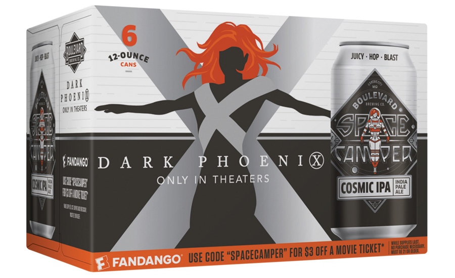 Boulevard Brewing Co. announced an official partnership with 20th Century Fox and its film Dark Phoenix, which hits theaters June 7. The partnership includes Boulevards Space Camper Cosmic IPA as the first beer to star as an AMC Move Feature Drink at more than 300 AMC Theatre’s MacGuffins adult beverage concepts. The collaboration also features Fandango codes for $3 off Dark Phoenix movie tickets that will be available on Space Camper six-packs that will feature a new, limited-edition X-men-inspired design featuring Jean Grey’s Dark Phoenix, the company says.