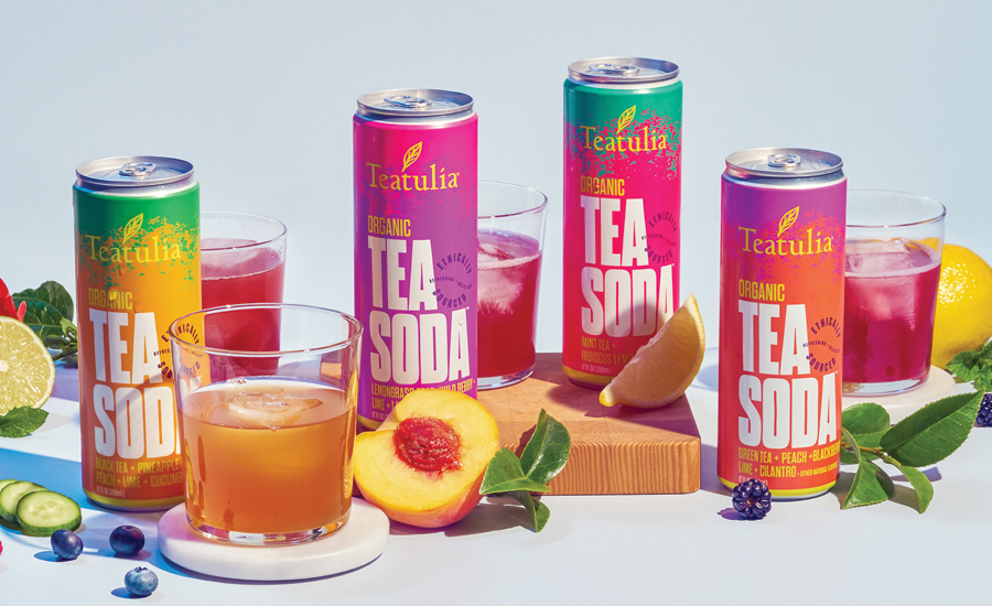 The clean-label trend is having a growing influence on the tea category. Teatulia’s Organic Tea Sodas feature real brewed tea, fruit and herbs with an effervescence. (Image courtesy of Teatulia Organic Teas)