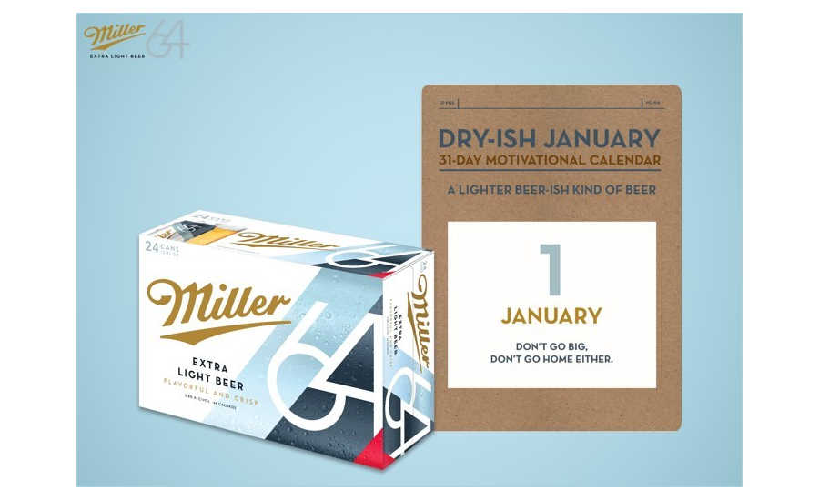 Miller64, a brand of Chicago-based Molson Coors Brewing Co., is launching a new campaign introducing its Dry-ish January, a movement focused on enjoying a lighter, beer-ish kind of beer this new year. Miller64 is a lighter, beer-ish kind of beer with only 64 calories and 2.8 percent alcohol by volume.