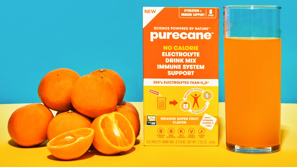Designed to offer optimal hydration and immunity, Purecane No Calorie Electrolyte Immune System Support is formulated with Sugarcane Reb M and features zero calories, zero sugar and zero net carbohydrates. Available in Orange Super Fruit, the electrolyte drink mix contains five essential vitamins and key electrolytes, the company says.
