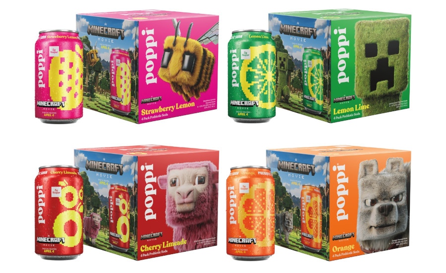 Designed by the poppi in-house creative team, limited-edition four-packs of core flavors Strawberry Lemon, Lemon Lime, Cherry Limeade and Orange feature iconic characters from “A Minecraft Movie,” including the Creeper, Bee, Sheep and Dennis the Wolf. Each cubic four-pack houses limited-edition can designs inspired by the pixelated world of Minecraft that viewers will see come to life in the movie, only in theaters and IMAX April 4.