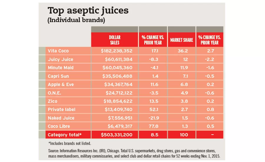 The Santa Monica, Calif.-based market research firm adds that niche products, including coconut water and tropical flavors, have proliferated within the market as new brands and manufacturers emerge.