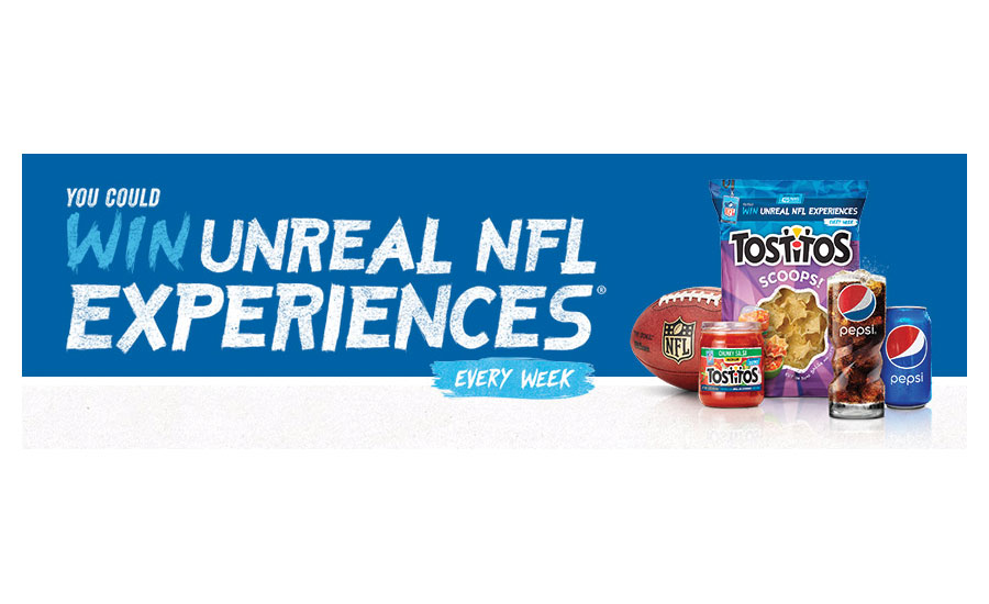 This football season, Pepsi and Tostitos are partnering to offer football fans the opportunity to experience the game like never before — from the sidelines, at the NFL draft party and in the tunnel with the players, the company says. Through Jan. 2, consumers can visit PepsiandTostitos.com to enter weekly prizes through the Win Unreal NFL Experiences program. “We are bringing our fans experiences they typically only dream of, from tossing the ball around with Drew Brees or helping team captains with the coin toss, these experiences offer our fans the opportunity of a lifetime,” said Jeff Klein, vice president of marketing at Frito-Lay North America, in a statement.