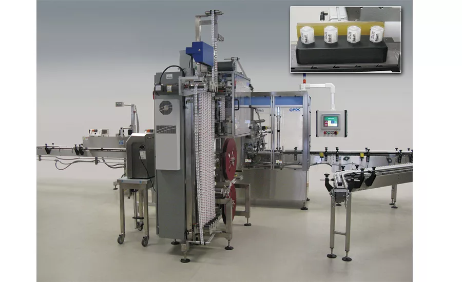PDC International Corp. offers a new iteration of its R Series Shrinkbanders that provide labeling and neck banding at line speeds from 400 to 1,000 containers a minute, the company says. Engineered for 24/7 service, with continuous material web flow that doesn’t pause for cutting, R Series machines apply 1- to 3.75-inch diameter bands at heights as high as 2.375 inches with precision and repeatability, it adds. The company’s single-head, in-line and tamper evident R-Series Shrinkbanders apply thin-gauge banding materials of 25 to 40 microns that are compatible with such shrink-sleeve films as PET, polyvinyl chloride (PVC), PET glycol-modified (PETG), biaxially oriented polystyrene (OPS) and polylactic acid (PLA) films, it adds. Designed for the high levels of compliance and sanitation required in the pharmaceutical, food and dairy industries, the R-series system features an easy-to-use touchscreen and a programmable logic controller. It also can be outfitted with a zero-downtime, splice-on-the-fly accumulator unwind stand that eliminates downtime for roll changes, it adds. Additional features include ink jet and thermal transfer coding, 2-D and barcode scanning, and vision system inspection.