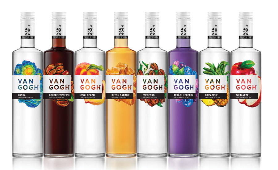 Van Gogh Vodka unveiled new packaging for its self-titled lineup of vodkas. The project was a collaboration between Van Gogh Vodka and Spring Design Partners, which sought to re-imagine the on-shelf expression of the iconic namesake by creating a standout design that would elevate the flavored vodka segment, capture the millennial market and contemporize the brand, it says. It also wanted to elevate the experience of the brand so that the packaging matched the high quality of the content inside, it adds. Each of the lineup’s eight flavors — Original, Double Espresso, Cool Peach, Dutch Caramel, Espresso, Acai-Blueberry, Pineapple and Wild Apple — features a unique expression, achieved with oil paint on canvas in a hand reminiscent of Van Gogh that combines expressive brush strokes and color with a textured varnish to create a sense of tactility, it says. The neck of each bottle features “the art of vodka” reversed out of black type while Van Gogh is printed in black type on a white label at the top of neck, it adds.