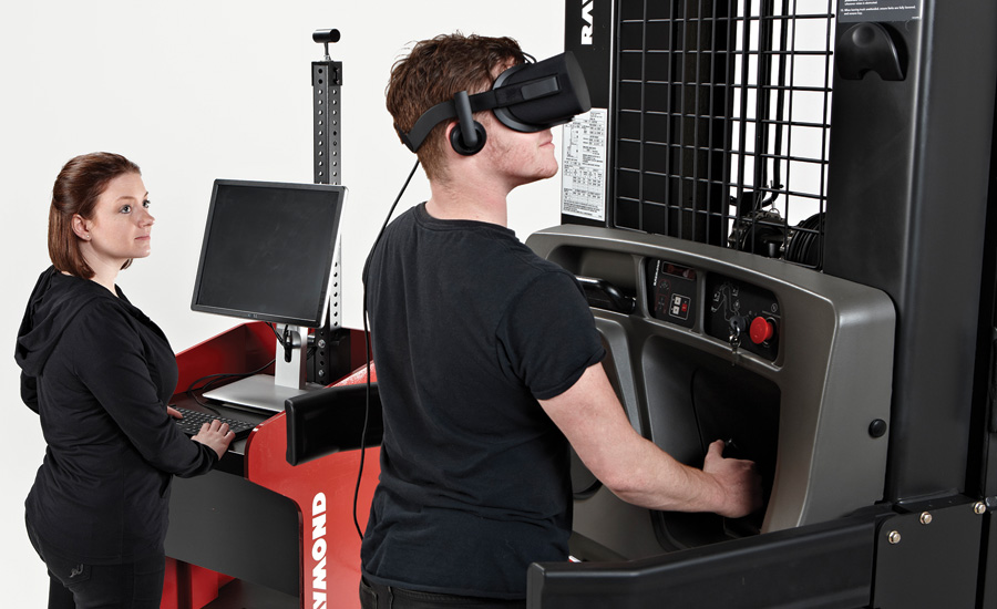 Greene, N.Y.-based Raymond Corp. demonstrated its newest innovation in virtual reality (VR) training in which lift operators are trained using preprogrammed, simulated exercises in a warehouse. Wearing a VR headset, operators wirelessly connect to Raymond lift trucks and are able to use actual vehicle controls as they navigate through the warehouse.