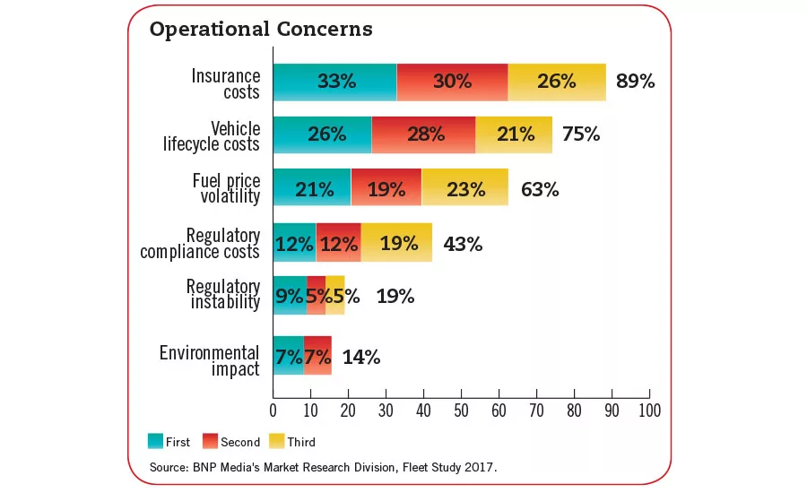 Although the relative ranking among top operational concerns are unchanged from last year, insurance cost, vehicle lifecycle cost and fuel price volatility have all increased in the percentage of respondents citing these areas as their largest concerns this year, while regulatory and environmental concerns have moderated.
