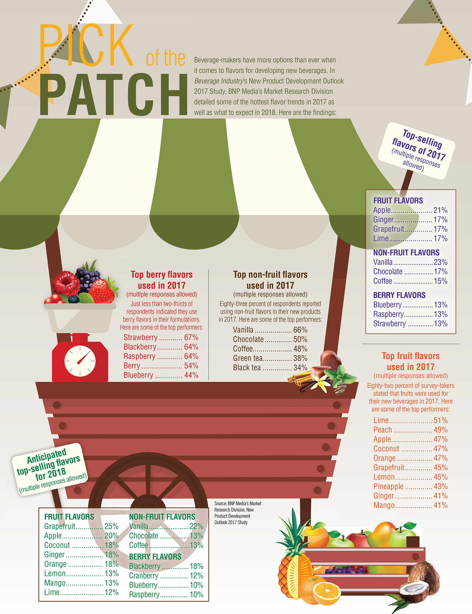 Beverage-makers have more options than ever when it comes to flavors for developing new beverages. In Beverage Industry's New Product Development Outlook 2017 Study, BNP Media's Market Research Division detailed some of the hottest flavor trends in 2017 as well as what to expect in 2018.