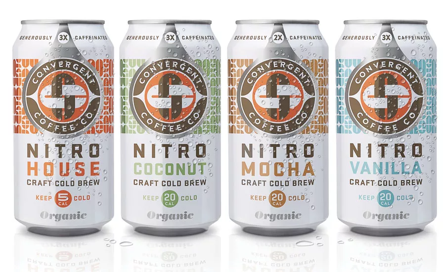 Convergent Coffee Co., a nitro-infused cold-brew coffee brand, announced a new brand design. The brand refresh was designed to elevate the overall aesthetic and appeal to consumers who love coffee and appreciate handcrafted beverages, the company says. The new design features a clean and distinctive look, new logo, stronger flavor identification and clearer benefit communication, it adds. Each 12-ounce can displays Convergent’s points of differentiation: nitro-infused, heavily-caffeinated, certified organic and Fair Trade, and low calories, the company explains. “Convergent Coffee is a pioneer of ready-to-drink, nitro-infused craft cold-brew,” said Steve Ball, chief executive officer of Convergent Coffee, in a statement. “After just a few short years, we are poised to breakthrough on a national stage. As we share our cold-brew coffee with new consumers, we wanted to be sure our look really embodied the carefully crafted style of our cold brews.”