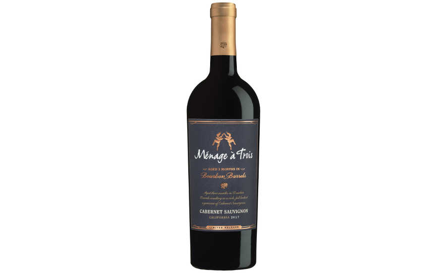 Ménage à Trois Bourbon Barrel Cabernet Sauvignon is packaged in a 750-ml bottle and has a suggested retail price of $15.