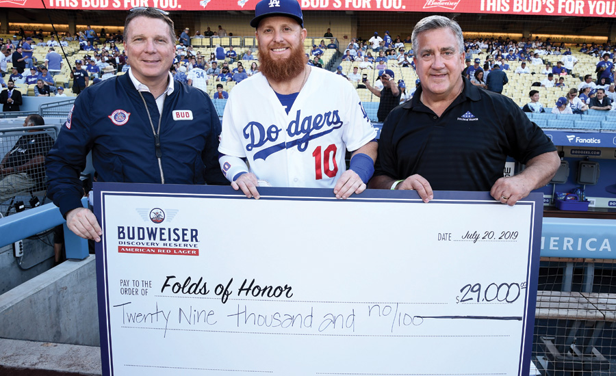 Budweiser and former NASA Astronaut and Air Force veteran Terry Virts celebrated the 50th anniversary of the Moon Landing (July 20, 1969) by throwing out the first pitch at Dodger Stadium. He also presented a $29,000 check to Rocky Sickmann of the Folds of Honor Foundation on behalf of Budweiser. This year, Budweiser debuted a new Discovery Reserve American Red Lager, a limited-edition beer inspired by the determination of the American spirit and based on an archival Budweiser recipe from the time of the Apollo Moon missions. The brand will donate $1 to the Folds of Honor Foundation for every case sold of Budweiser Discovery Reserve.