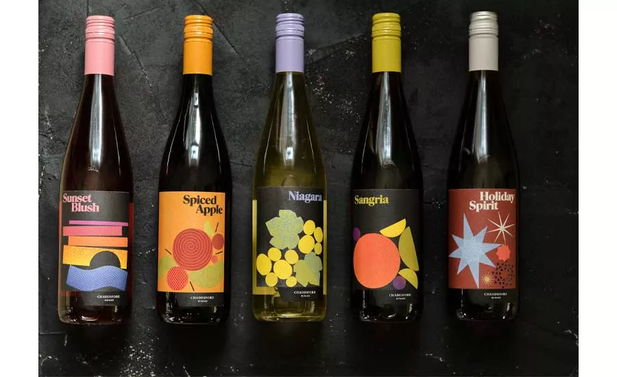 Chaddsford Winery has rolled out new packaging and a rebrand of its entire sweet wine portfolio. The refreshed labels are for its Spiced Apple, Holiday Spirit, Sangria, Niagara and Sunset Blush brands. While the labels provide a refreshed modern look, brand consistency was achieved by retaining the recognizable custom color of each wine’s screw cap as part of the packaging, it says. “The new labels immerse consumers in each wine's seasonality through bold colors and recognizable shapes with exaggerated perspective, subtle pattern gradients, and raised textural finishes,” Chaddsford said in a statement.