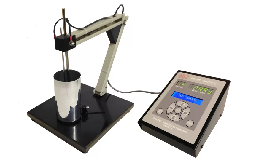 Wilkens-Anderson Co. offers its new Digital Enamel Rater III for fast, accurate quality inspection measurements of the enamel coating on the inside of food and beverage cans. The device displays an index of the metal exposure due to incomplete enamel coverage on a digital LED display. Among the features are a new LCD screen for easy menu selection, adjustment and settings; a 5-digit digital LED display for milliamp readings; and a 2-digit LED timer display, the company says. Voltage is set at 6.3 VDC, which is adjustable from 4-9 VDC. Operating range is 0-500 ma with an improved accuracy resolution of 0.01 ma. Preset to an industry standard four-second mode, the rater also can be put into continuous or programmable modes. In programmable mode, the operator can select customized time settings. Both RS232 and USB ports allow for easy transfer of data to computers, printers or data collection systems, the company says.