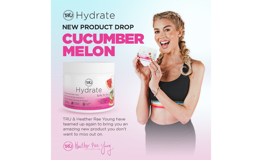 On the heels of their most recent collaboration's success, media personality, entrepreneur and star of the Netflix show “Selling Sunset” Heather Rae Young is partnering with TRU Supplements, Los Angeles, for a second time. The duo developed TRU Hydrate Cucumber Melon, a drink mix designed to create a revitalizing beverage, it says.