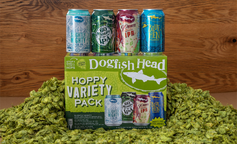 Dogfish Head Craft Brewery, a division of Boston-based The Boston Beer Co., introduced its new Hoppy Variety Pack, a 12-pack of 12-ounce cans that features four hop-forward beers, including its new Blue Hen Pilsner, and offers drinkers a unique, multi-sensory experience with a special, hop-scented element made using real hop oils on the front of each box.