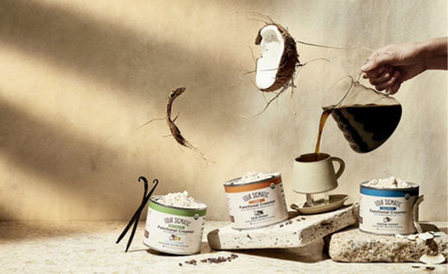 Recently, to complement its lineup of ground coffees made with mushroom adaptogens, Los Angeles-based Four Sigmatic launched a new line of coffee creamers: Think, Gut Health and Balance. The functional creamers deliver specific benefits from mushrooms, the company says. Each powdered variety is made with coconut milk, MCT oil, mushrooms, adaptogens, real vanilla, real cacao, and zero artificial flavors or fillers.