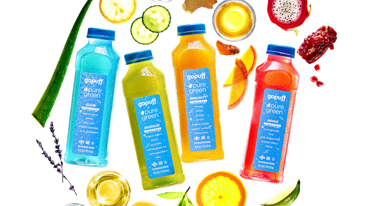 “Over the past two years, we’ve leveraged consumer insights to develop several private label brands that break from the mold to bring our customers more of what they love: bold flavors, high-quality ingredients and affordable prices,” said Jessica Glendenning, director of private label at Gopuff, in a statement at the time of the release. “Today, we’re thrilled to partner with Pure Green, an authority in the cold-pressed juice space, to redefine yet another category. With vibrant flavors, no added refined sugar, and functional ingredients, we know our customers will love the new Gopuff x Pure Green Refreshers.”