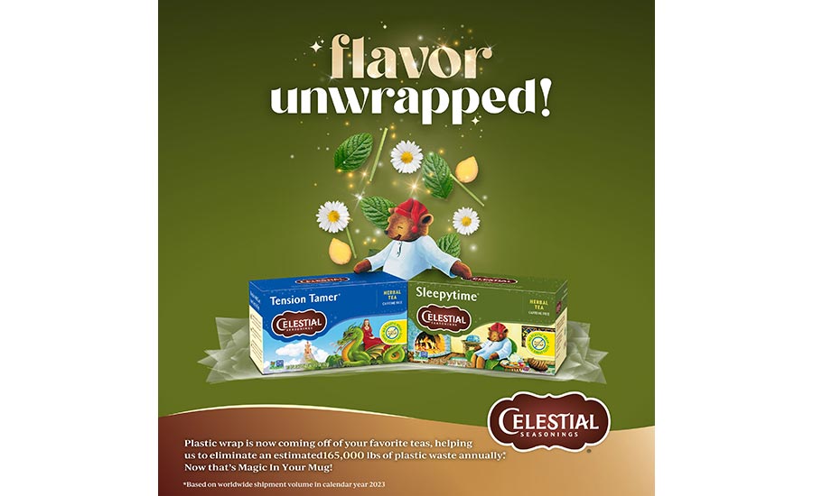 “Celestial Seasonings is a global specialty tea brand and part of Hain Celestial Group’s family of brands, whose commitment to sustainability is focused on progress in three key areas: Healthier Planet, Healthier Products, and Healthier People,” she explains. “By removing the plastic overwrap from Celestial Seasonings tea boxes, the brand is contributing to Hain Celestial’s progress towards its sustainable packaging goals, including eliminating excess packaging materials and increasing the recyclability of its packaging globally.”