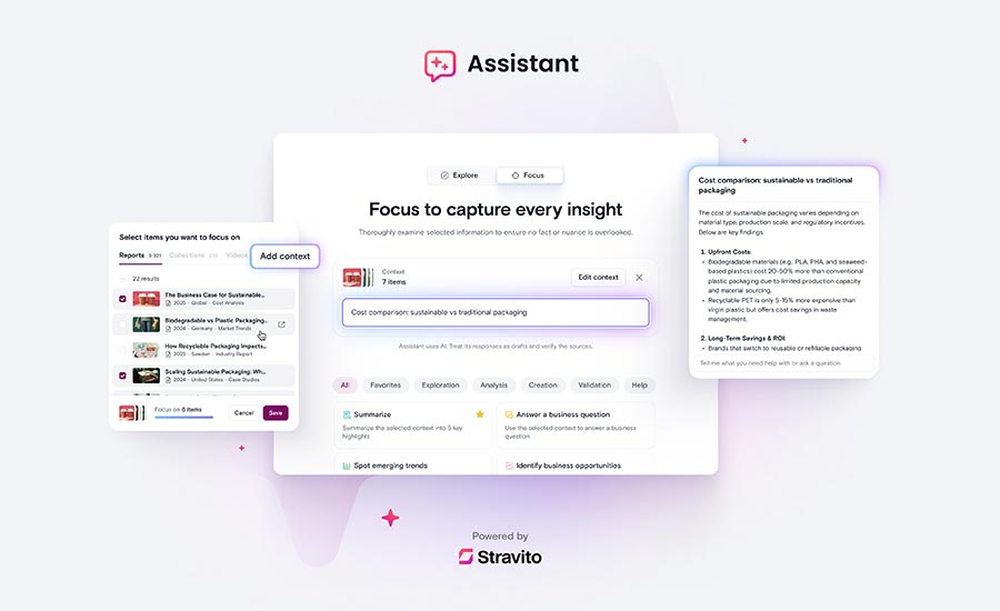 “With tools like Stravito Assistant, beverage-makers can now instantly identify relevant insights by asking questions such as, ‘How do American millennials feel about immunity-boosting beverages?’ or ‘Which dairy-alternative drinks are growing fastest?’” he shares. “Assistant can answer with insights from trusted data sourced from their company’s entire knowledge base.”