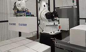 At Pack Expo in Chicago, A-B-C Packaging Machine Corp. introduced its new 700 series robot palletizers utilizing a Yaskawa robot arm. The 700 series palletizes cases, trays or bags in multiple configurations at speeds as fast as 30 cycles a minute, the company says.